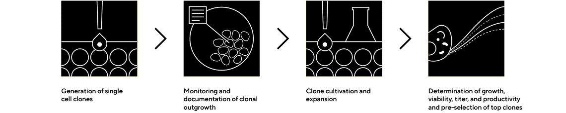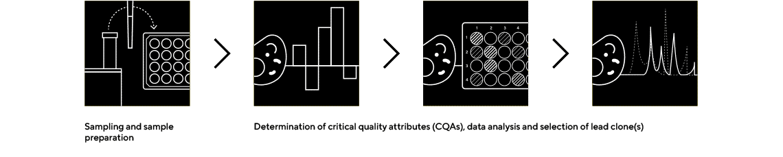 数量に加えて、製品の品質属性を早期にスクリーニングすることで、後期での失敗を回避するためのクローン選択が容易になります。ザルトリウスの装置やすぐに使えるアッセイのパッケージ、プラットフォーム法を用いて、質と量に基づいた最適なクローン選択で、成功を確実にします。